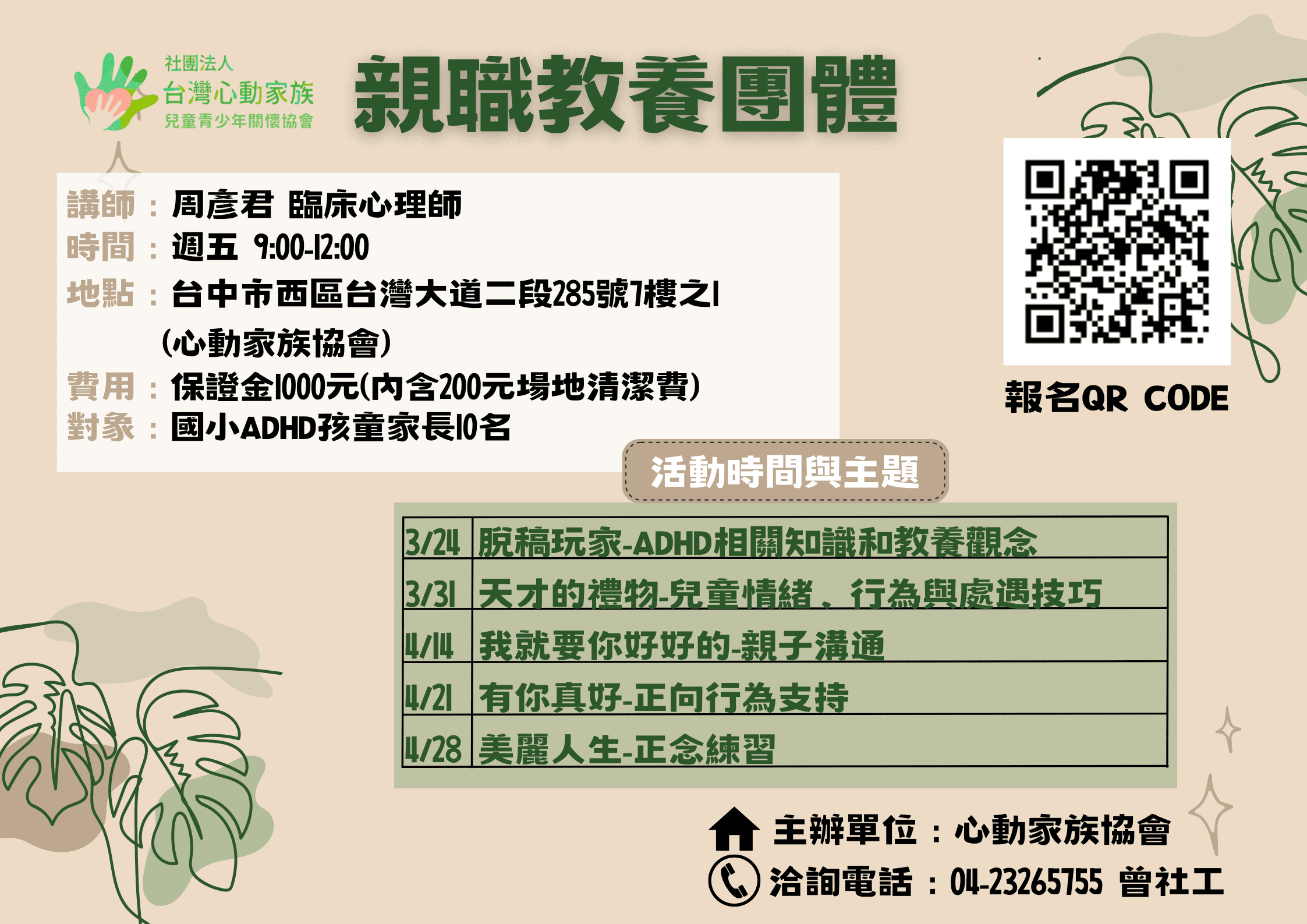 ■活動對象:國小ADHD孩童之家長,限10位