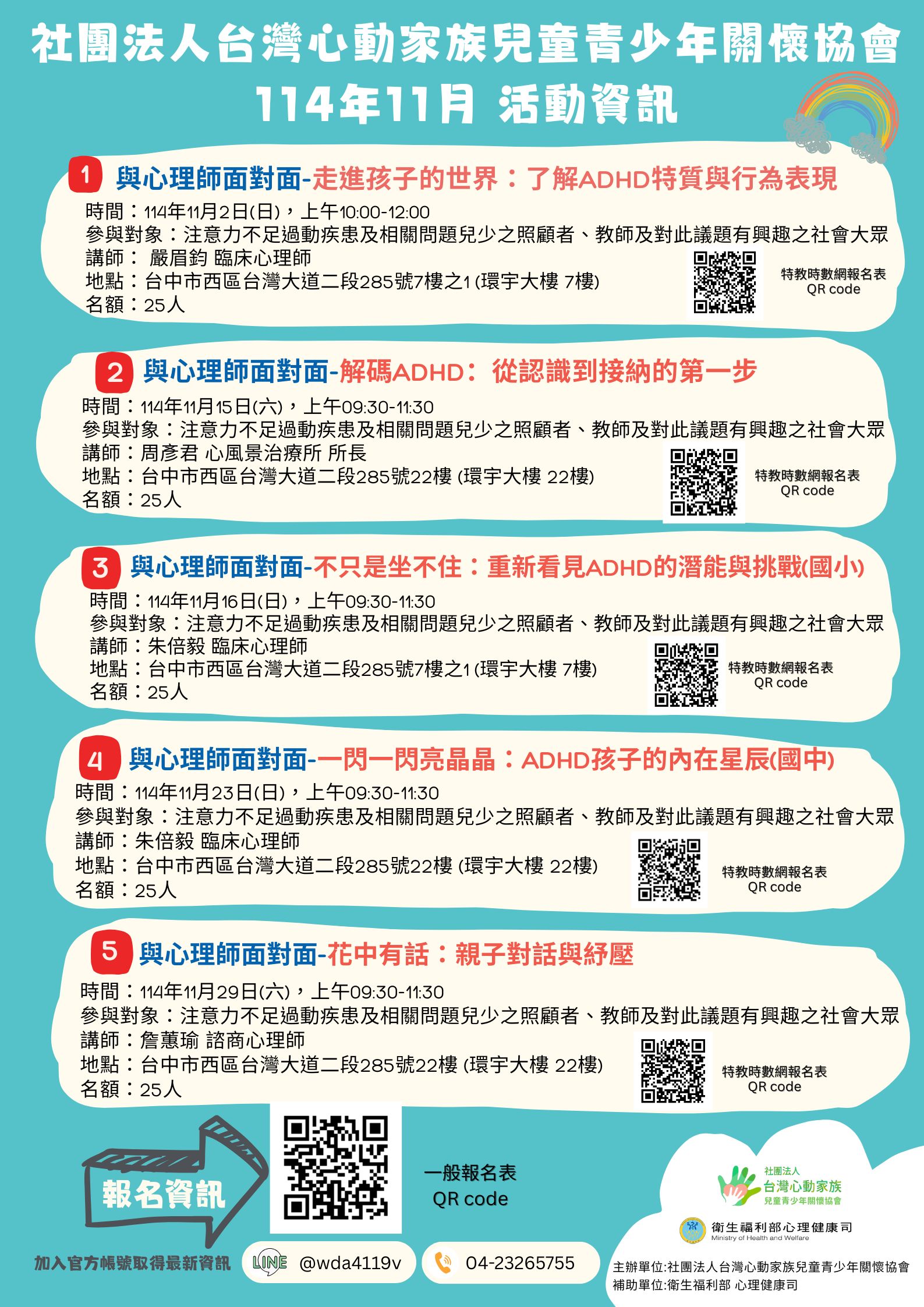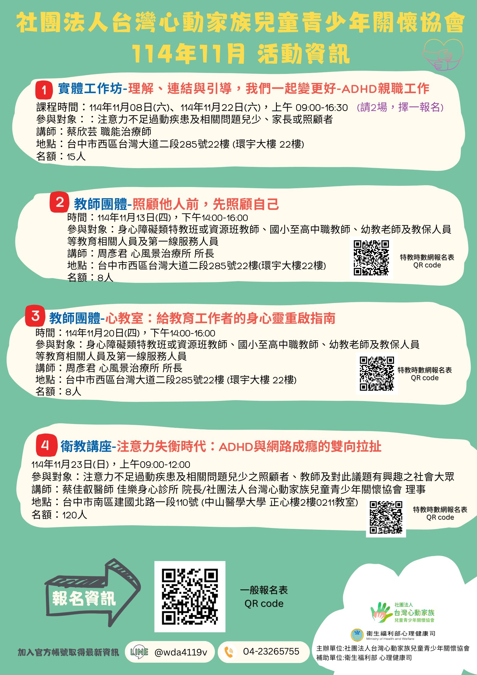 11月活動共計多達10場次!!想參加的家長、教師、一般民眾快手刀報名~