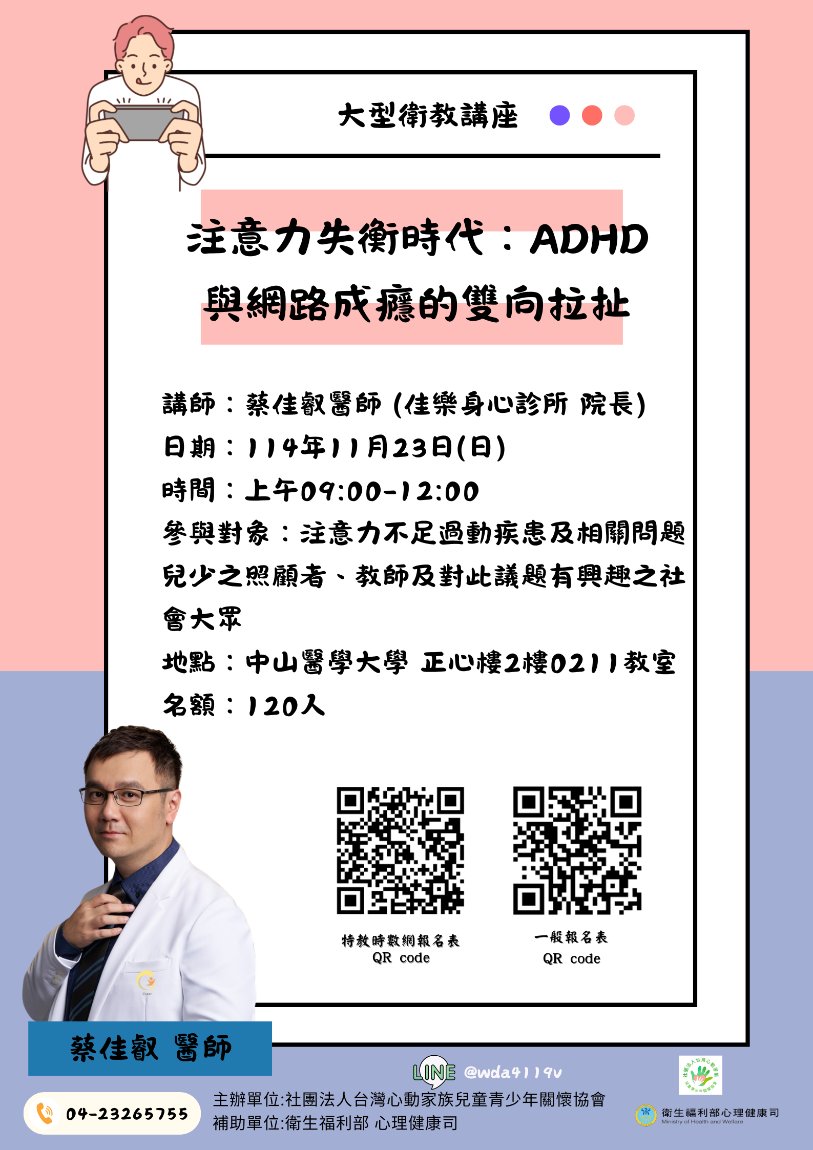為了孩子,我們總是要不斷地學習, 總是這麼努力的你,別錯過這次充電的機會, 一起來與醫師相互支持、討論。