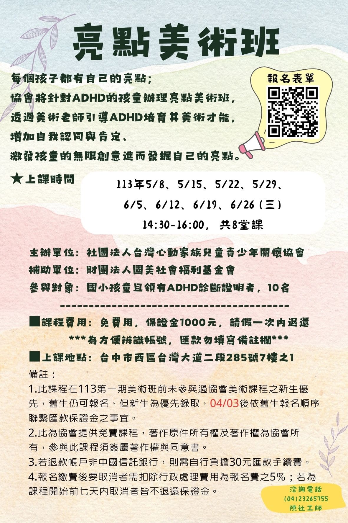 每個孩子都有自己的亮點,透過美術老師引導ADHD培育其美術才能, 增加自我認同與肯定.....