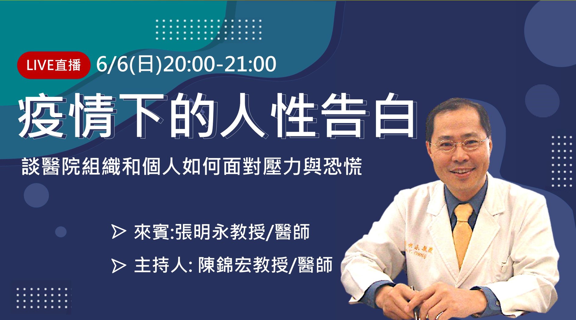 走過SARS風暴的精神科權威張明永醫師/教授, 與主持人陳錦宏醫師,精彩的對談將和大家分享抗疫的心靈作戰經驗。