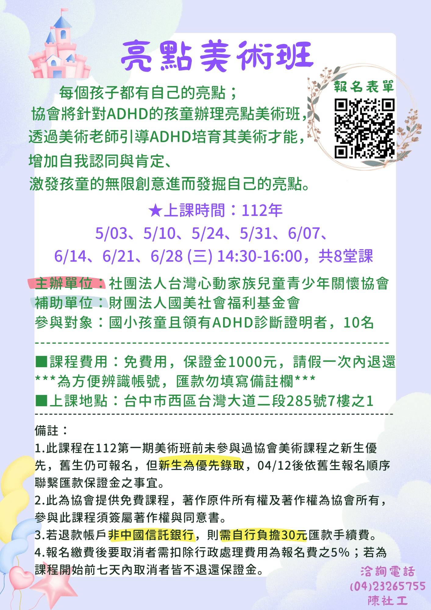 每個孩子都有自己的亮點,透過美術老師引導ADHD培育其美術才能, 增加自我認同與肯定.....