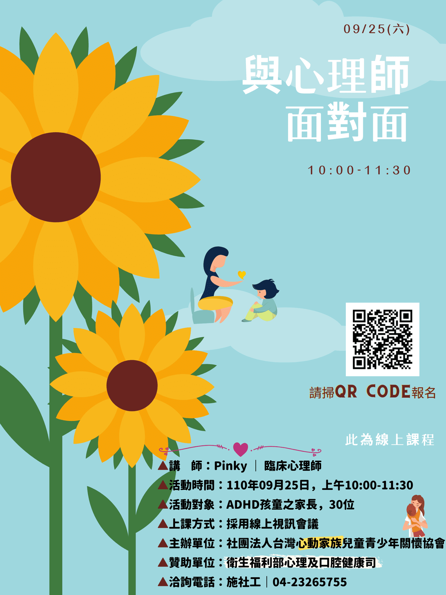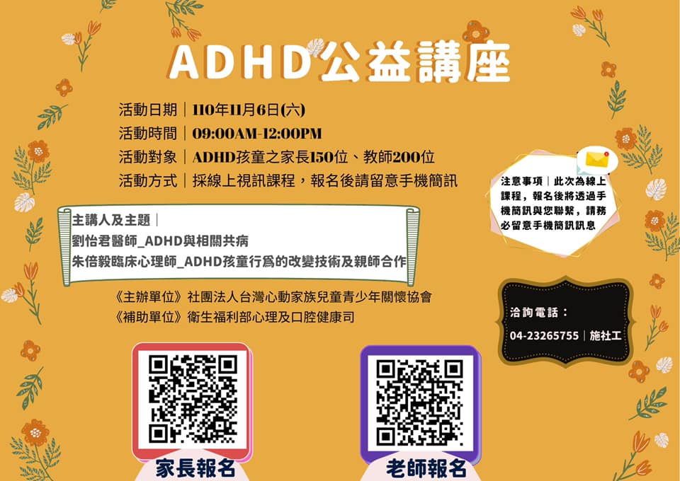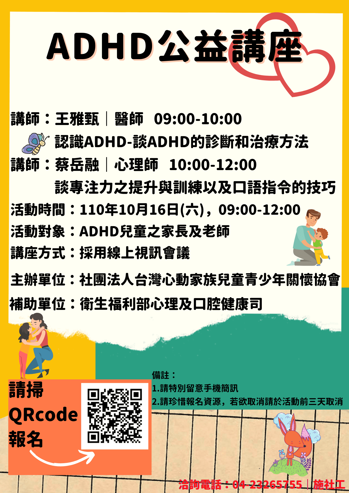 1.認識ADHD—談ADHD的診斷與治療方法 2.ADHD專注力—談專注力之提升與訓練以及口語指令的技巧