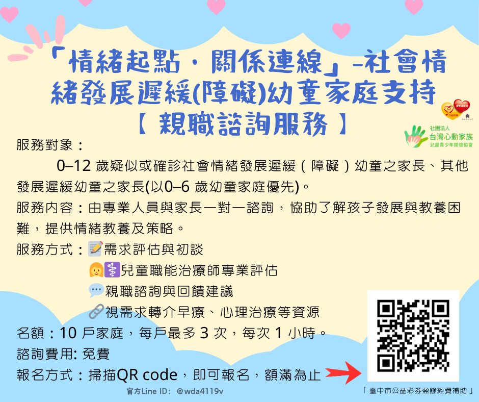 115年度「情緒起點・關係連線」-社會情緒發展遲緩(障礙)幼童家庭支持【諮詢服務】